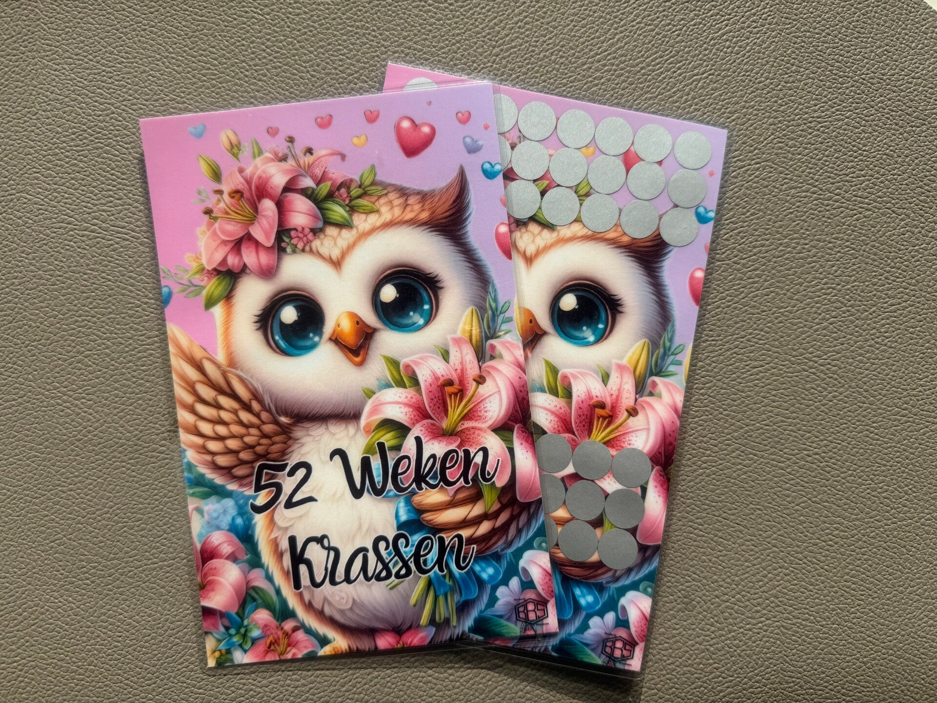 Elke week kras je één vakje open en spaar je het bedrag dat tevoorschijn komt. De bedragen variëren van €1 tot €5 – dus altijd betaalbaar!